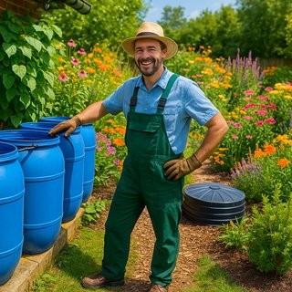 Baštík začínal skromně. K okapu připojil první plastový barel na 200 litrů. Když viděl, že to jde a má vodu po ruce, přidal další a postupně je propojil hadicemi, aby fungovaly jako spojené nádoby. První naplněný barel tak doplňuje vodu do dalšího v řadě. Díky tomu dnes napájí šest barelů najednou – a má tak zásobu více než tisíc litrů dešťové vody.